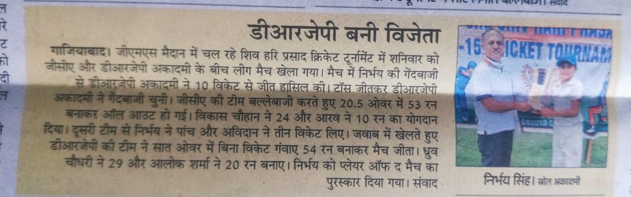 मुकाबला डी.आर.जे.पी क्रिकेट अकादमी, डी.आर.-के क्रिकेट अकादमी के